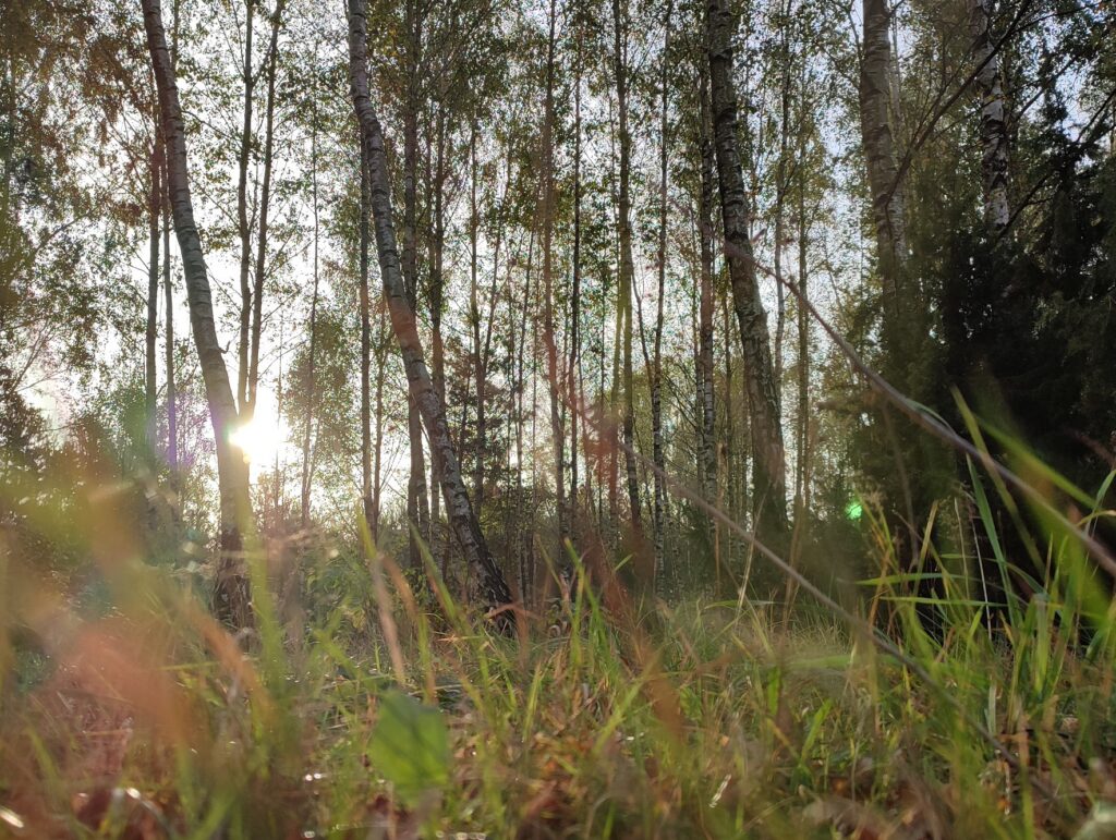 Wstaję rano, wszyscy domownicy jeszcze śpią. Udaje mi się zaparzyć kawę i usiąść na fotelu przed domem. Pierwsze promienie słońca przebijają się między liśćmi brzóz. Słychać świergot budzących się ptaków, a z oddali dobiega pianie koguta. Czuć przyjemny chłód. Krople rosy na trawie błyszczą w słońcu. Przez chwile po prostu jestem. Nic nie robię, staram się nie myśleć, trzymam kubek z kawą i jestem tu i teraz. Biorę książkę, czytam kilka stron. Jestem, książka, szumiące liście, wschodzące słońce, poranna cisza, spokój, rutyna.
